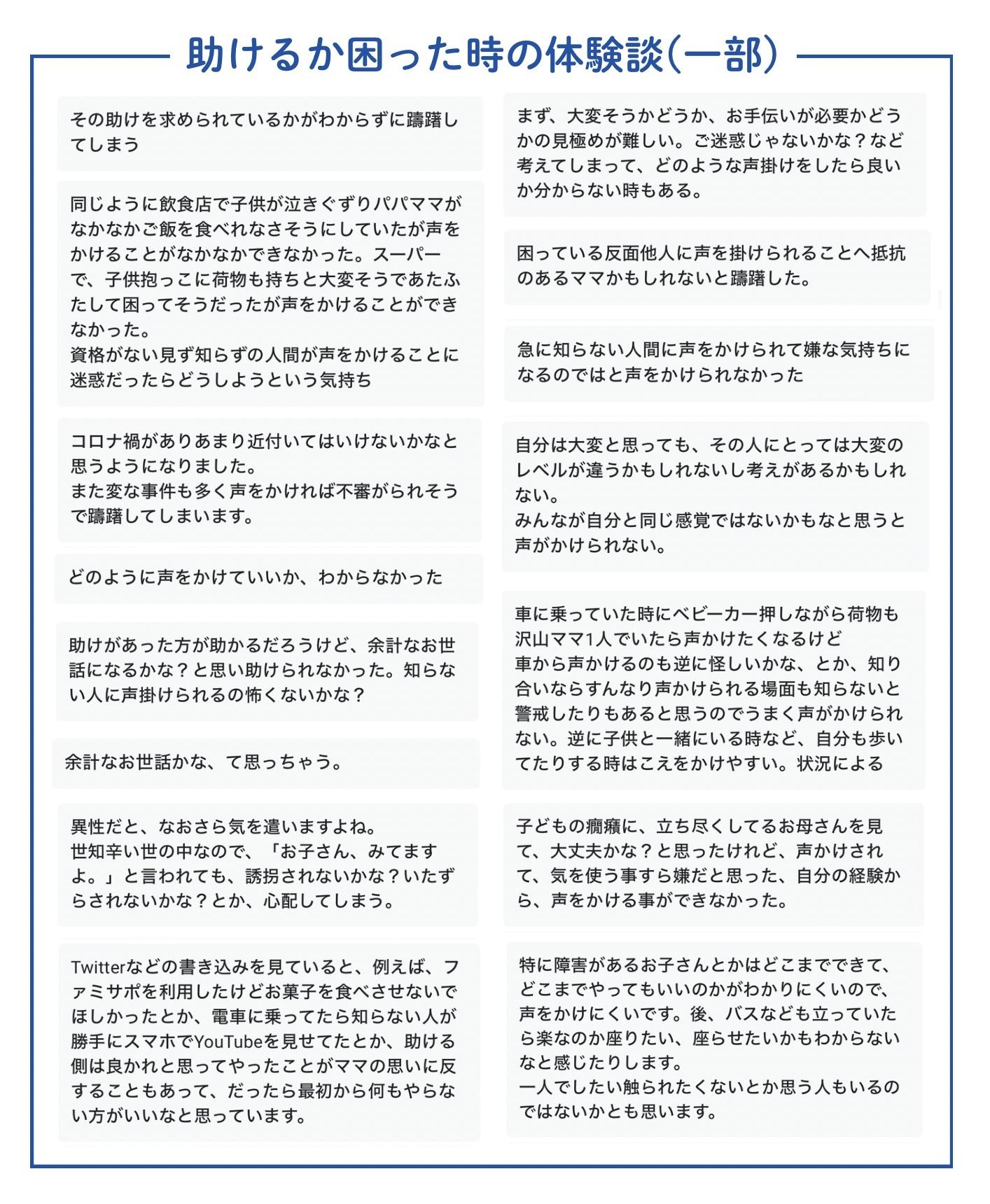 その一方で、「小さい子どもを連れて大変そうな保護者を見かけて助けたいと