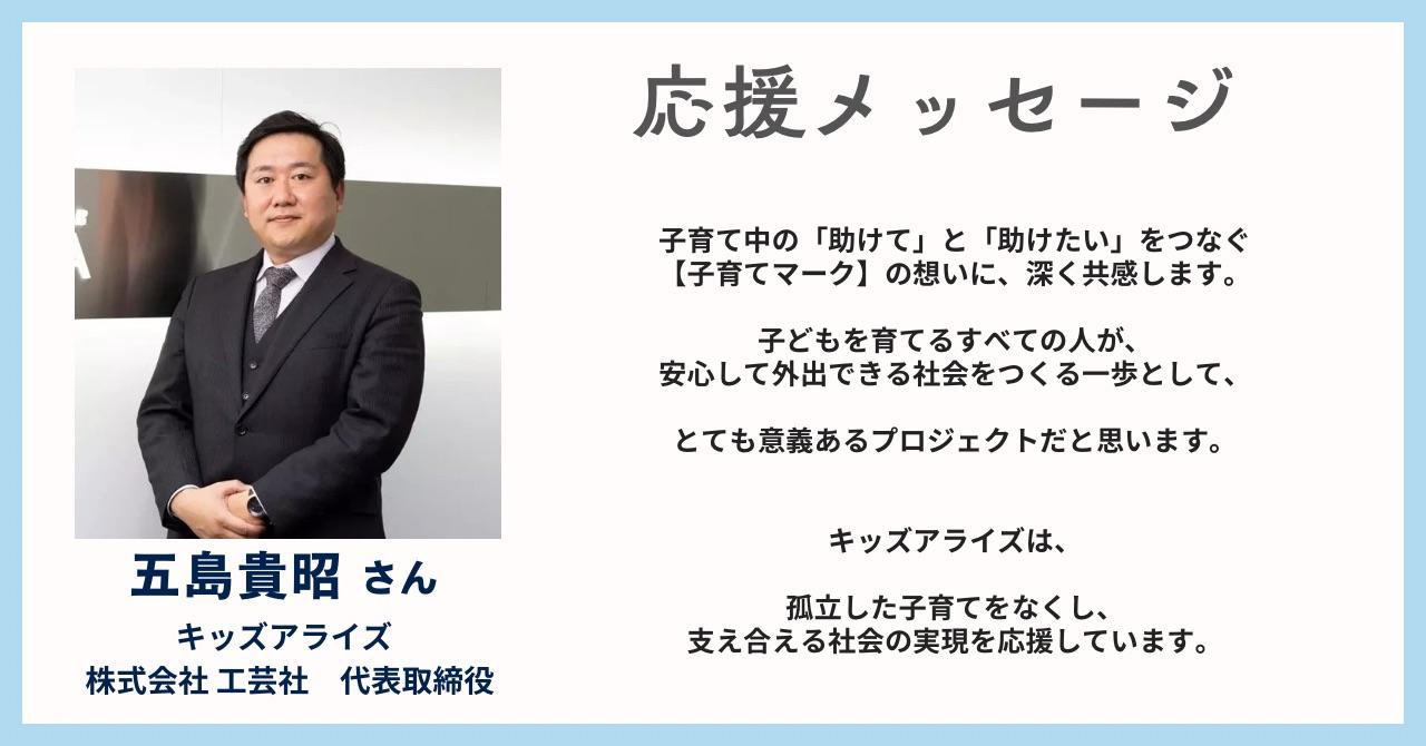 子育てマークを全国共通にすることで、地域を越えて、想いや優しさが自然に伝わる社会をつくりたい。それが私の想いです。