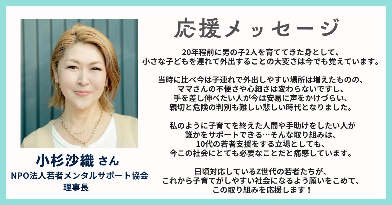 ・子育てマークは、子どもがいますという静かなメッセージとして、健康とマナーのある社会をつくる小さなきっかけになります。やがてそれが、大きな変化に繋がっていくと信じています。